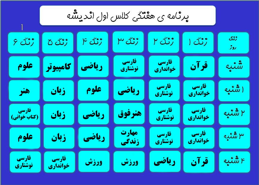 برنامه هفتگی کلاس ما